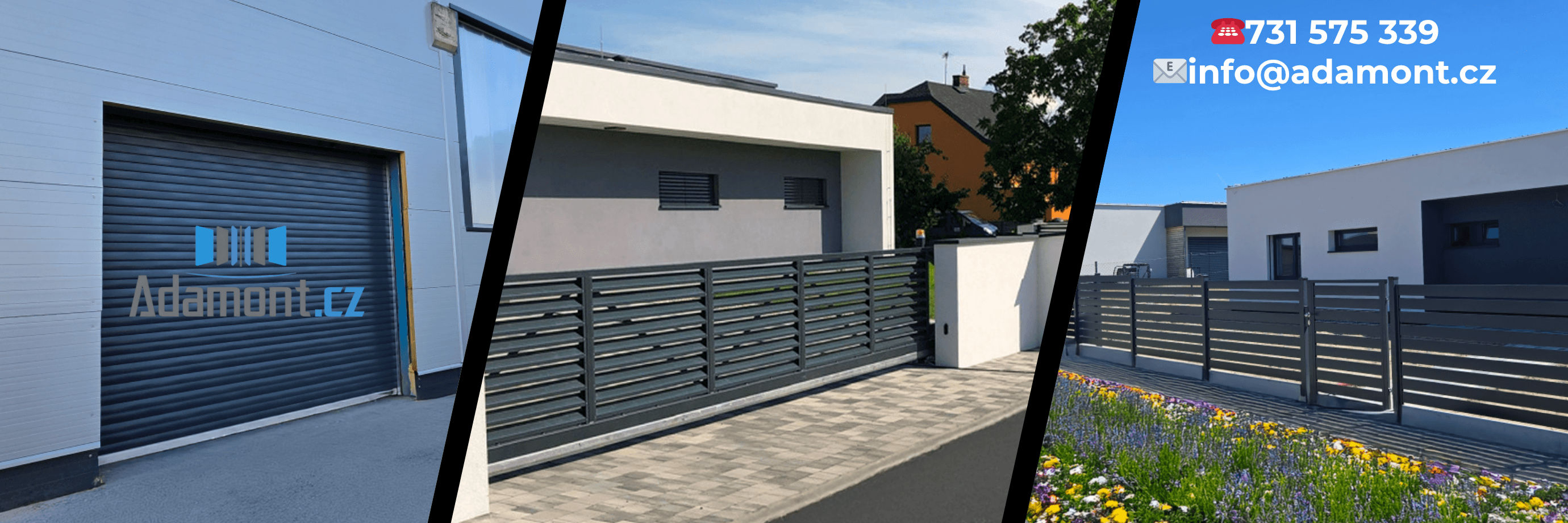 Naše společnost Adamont.cz se zabývá výrobou, servisem a montáží garážových a průmyslových vrat, samonosnými a křídlovými branami. Realizujeme pokládku zámkové dlažby. Dodáme na klíč oplocení vaší nemovitosti. Působíme v Moravskoslezském, Olomouckém a Zlínském kraji a pobočku máme v Ostravě.